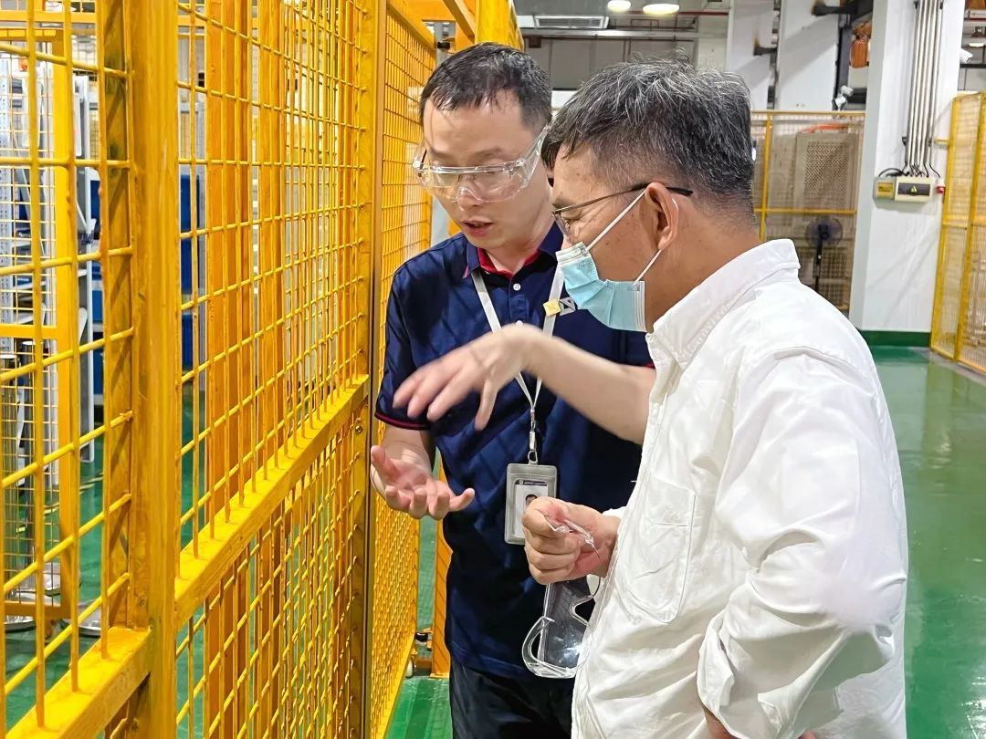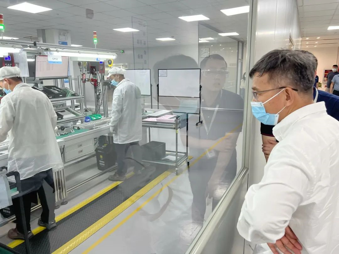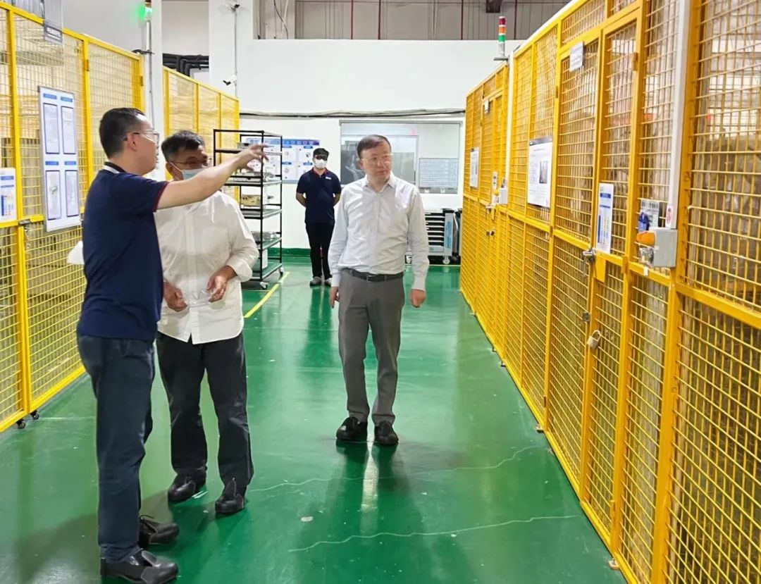 步入廠區,李澤湘詳細了解了目前產線的生產情況及工藝流程。在研發測試區,聽取了關于試制線、集成測試臺等重點項目的匯報,關切詢問了最新的研發進展及項目開展中碰到的技術壁壘等問題。
