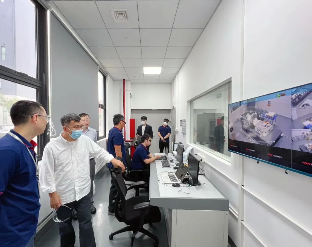 李澤湘一行來到位于臨港泥城產業區創造園的臻驅電氣。臻驅電氣主要承接集團公司研發產品的試制、組裝和小批量生產,承擔了集團公司前期研發階段的多項可靠性研發測試,如臺架、可靠性測試平臺、震動臺架、功率測試、雙脈沖測試等。目前工廠年產約8萬套,配備國內最先進的智能螺絲擰緊槍和自主研發的高科技測試設備。